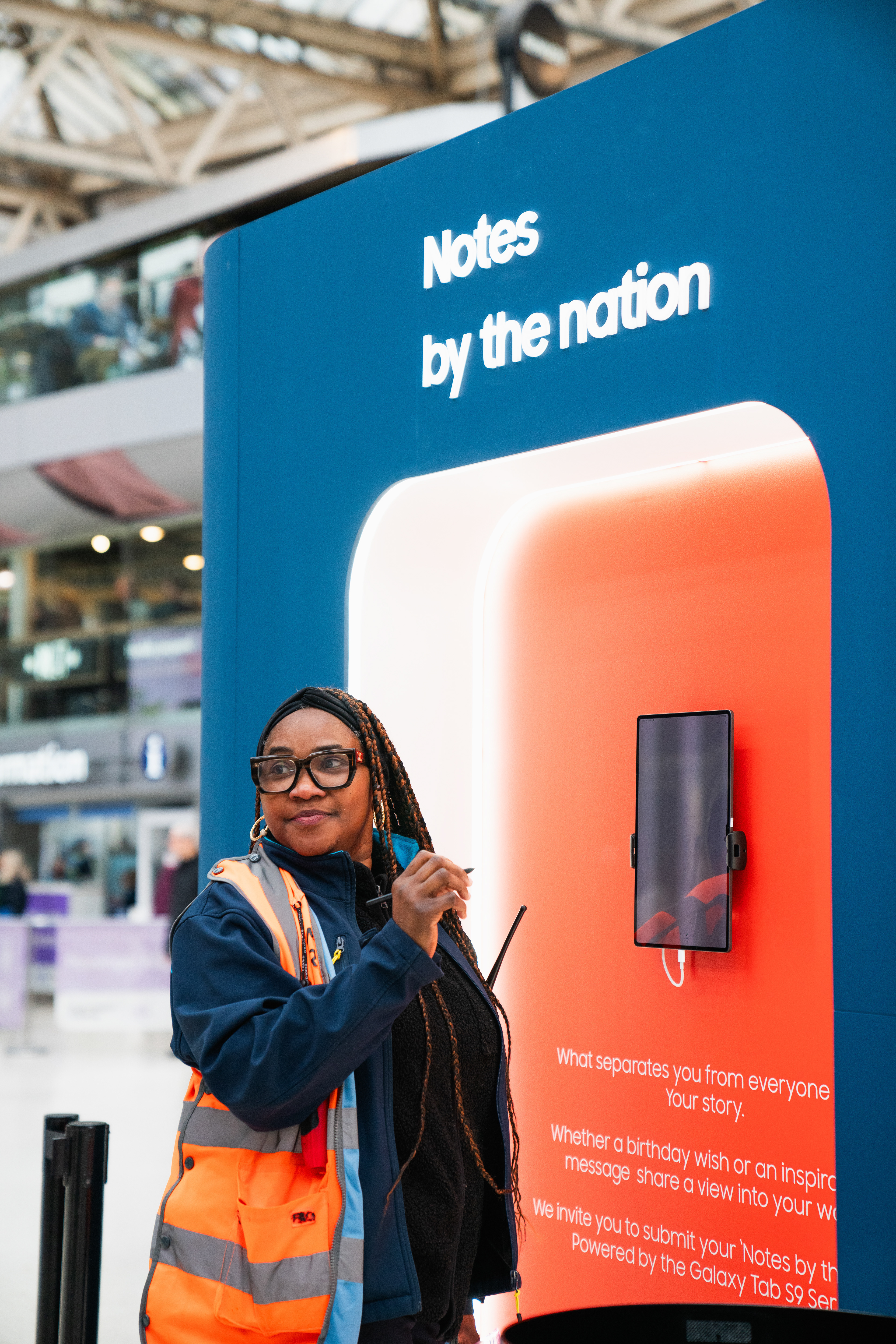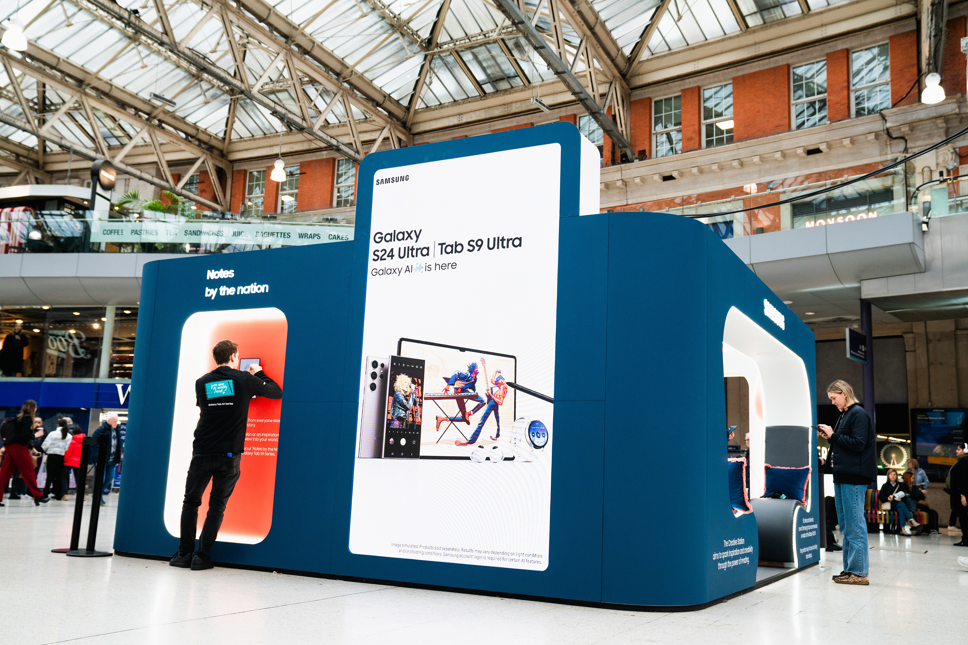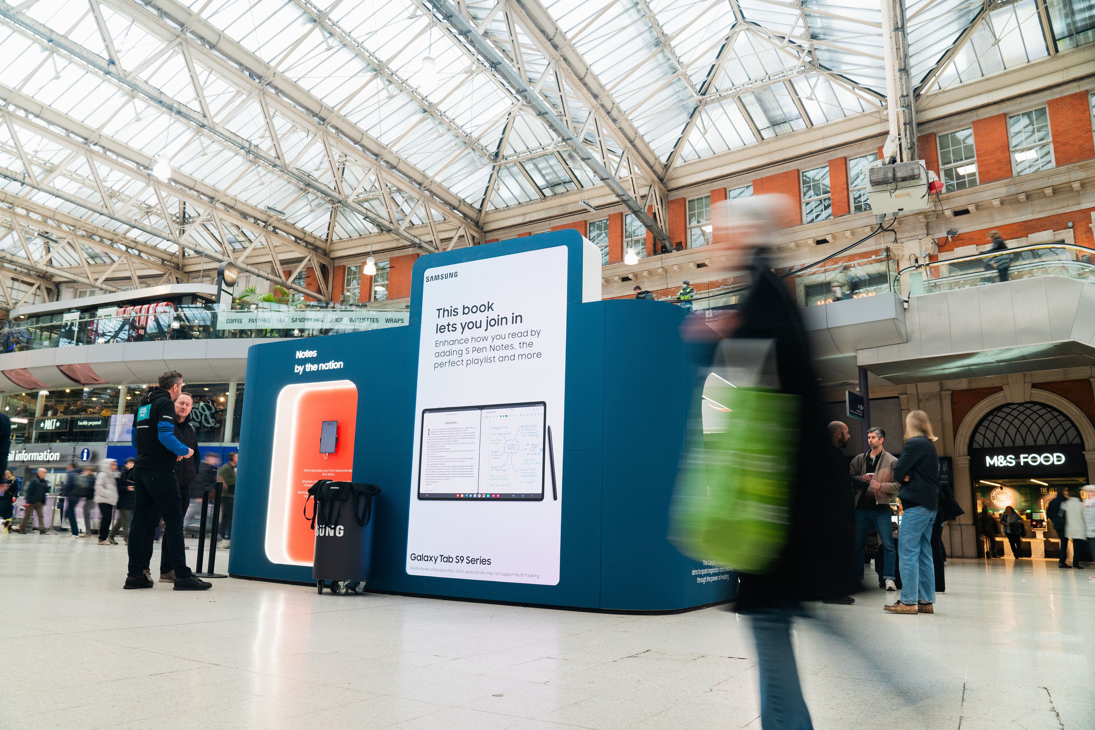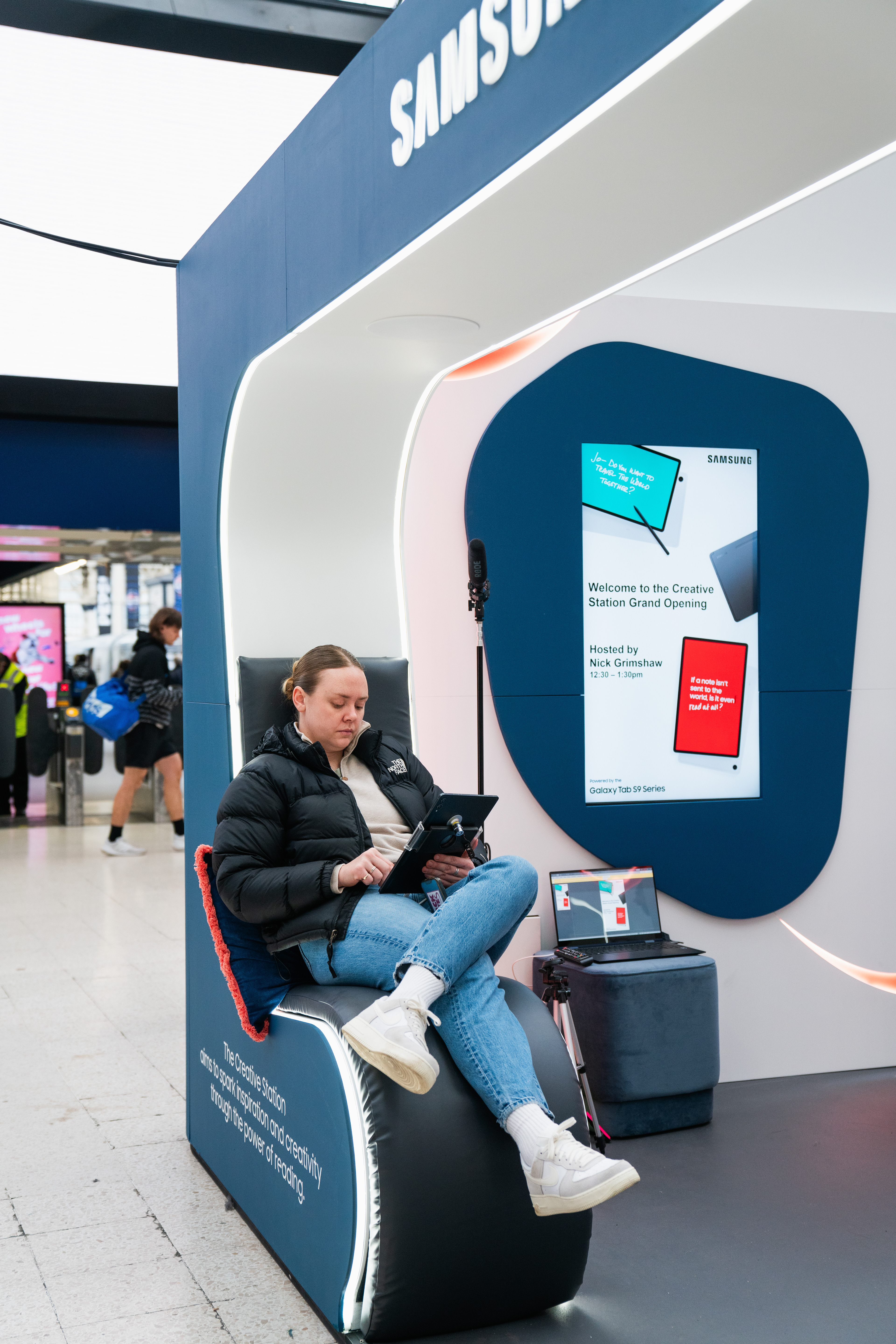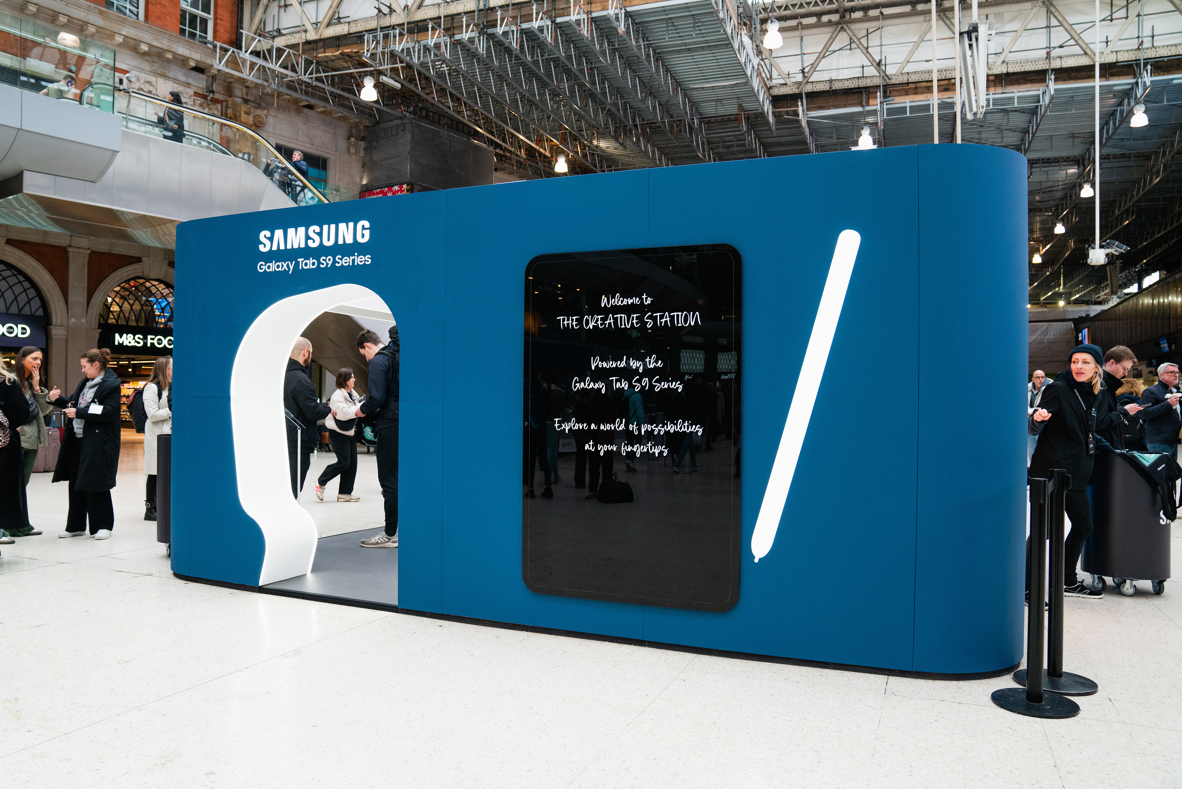The Creative Station was a free interactive space allowing commuters to explore their creative side. There were workshops led by talent such as @NotesToStrangers, YouTuber Freya Nightingale, and author Nick Grimshaw. And working alongside Metro visitors shared their Rush Hour Crush live directly from a Galaxy Tab S9, displayed in real-time at the pop-up.