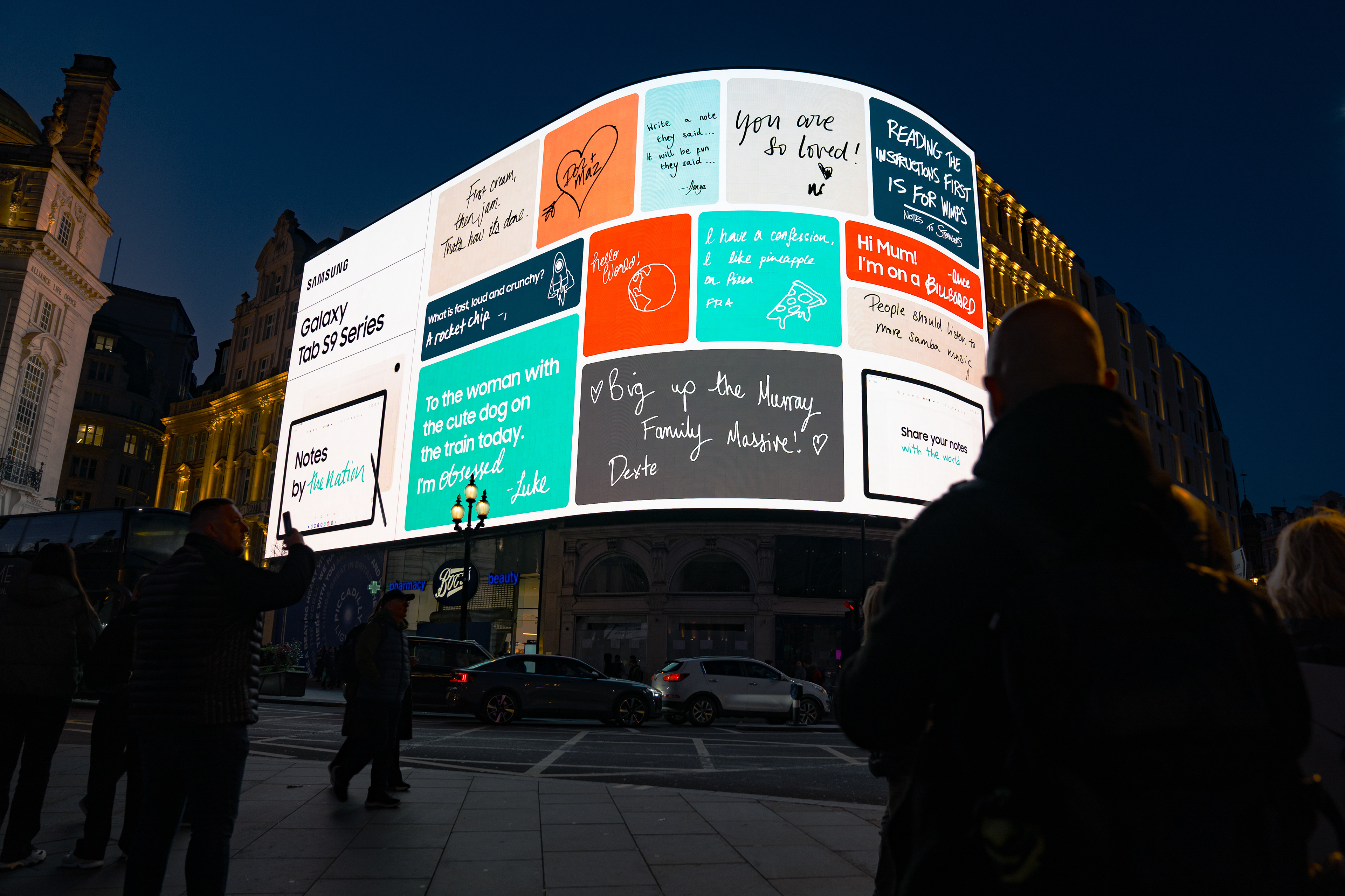 So, we turned Piccadilly Circus into the nation’s fridge door and let everyone share their notes. All of them written and powered by the reading and creative capabilities of the Galaxy Tab S9 series.